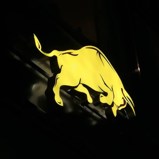 Объёмный световой короб с фигурным резом можно изготовить любых форм и размеров. Он используется как элемент вывески или как самостоятельная лицевая надпись. Последний вариант может стать удачным дизайнерским решением и поможет сэкономить бюджет.